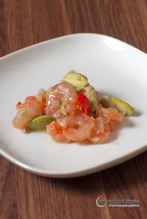 Dit gerecht met garnalen kan uitstekend gegeten worden als onderdeel van de rijsttafel. Natuurlijk smaakt het ook prima met enkel witte rijst en wat asinan: een gemengde rauwkostsalade. Je kunt voor dit gerecht zowel kleine garnalen gebruiken als de wat grotere gamba garnalen.
